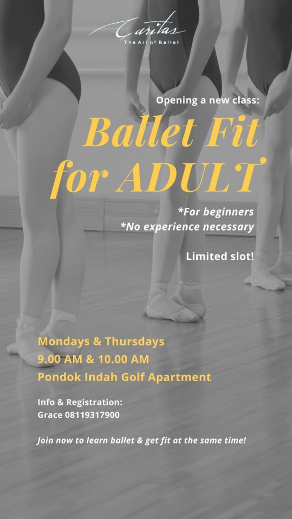 Opening new classes: BalletFIT for ADULT *For beginners*No experience necessary Limited slot! Venue:Pondok Indah Golf ApartmentOrchid tower Info & Registration:Grace 08119317900 Join now to learn ballet & get fit […]